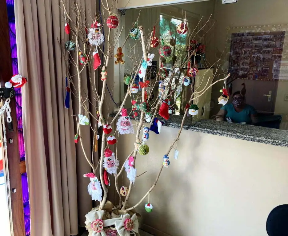 Com orientação das assistentes sociais Camila Santos e Danielle de Carvalho e o auxílio da educadora social Claudia ferreira, as participantes da oficina se inspiraram no projeto ‘Florir Teresópolis’ para a produção dos ornamentos natalinos, com flores feitas em feltro para enfeitar a entrada do equipamento. Além disso, as artesãs produziram guirlandas e enfeites para a árvore de galhos secos, historicamente já conhecida pelos frequentadores do CRAS Alto.