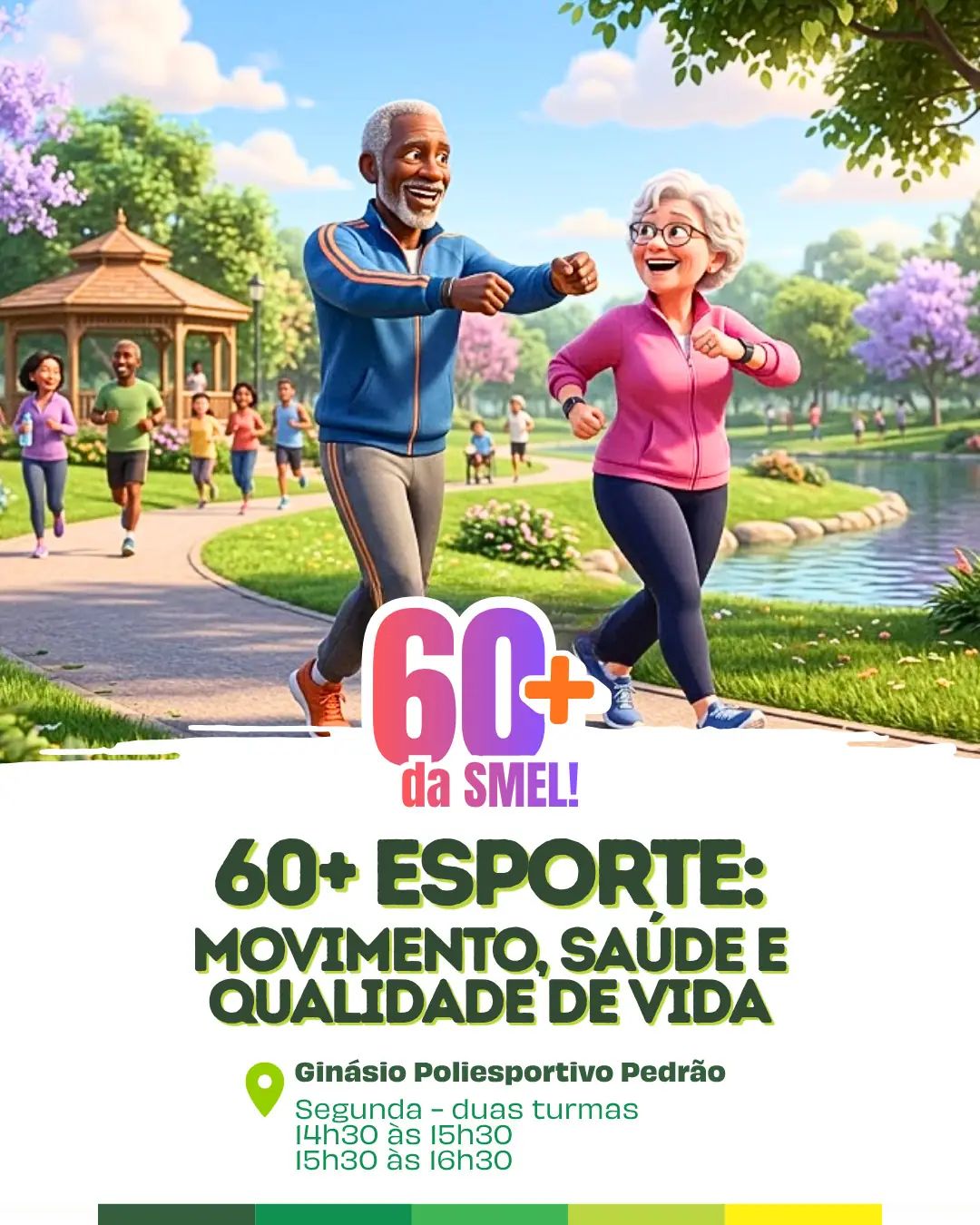 Outra iniciativa é o programa 60+ Esporte, voltado ao público da terceira idade, com foco em movimento, saúde e qualidade de vida. As atividades são realizadas às segundas-feiras, no Pedrão, com turmas nos horários de 14h30 às 16h30 e 15h30 às 16h30.
