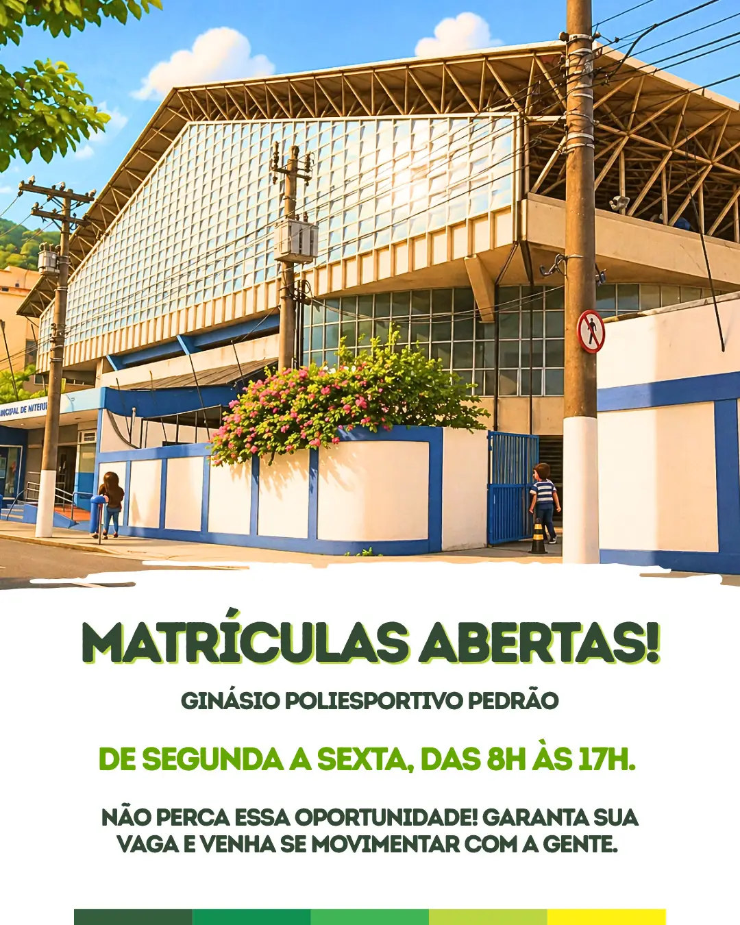 As matrículas estão abertas e podem ser realizadas no Ginásio Poliesportivo Pedrão, de segunda a sexta-feira, das 8h às 17h.