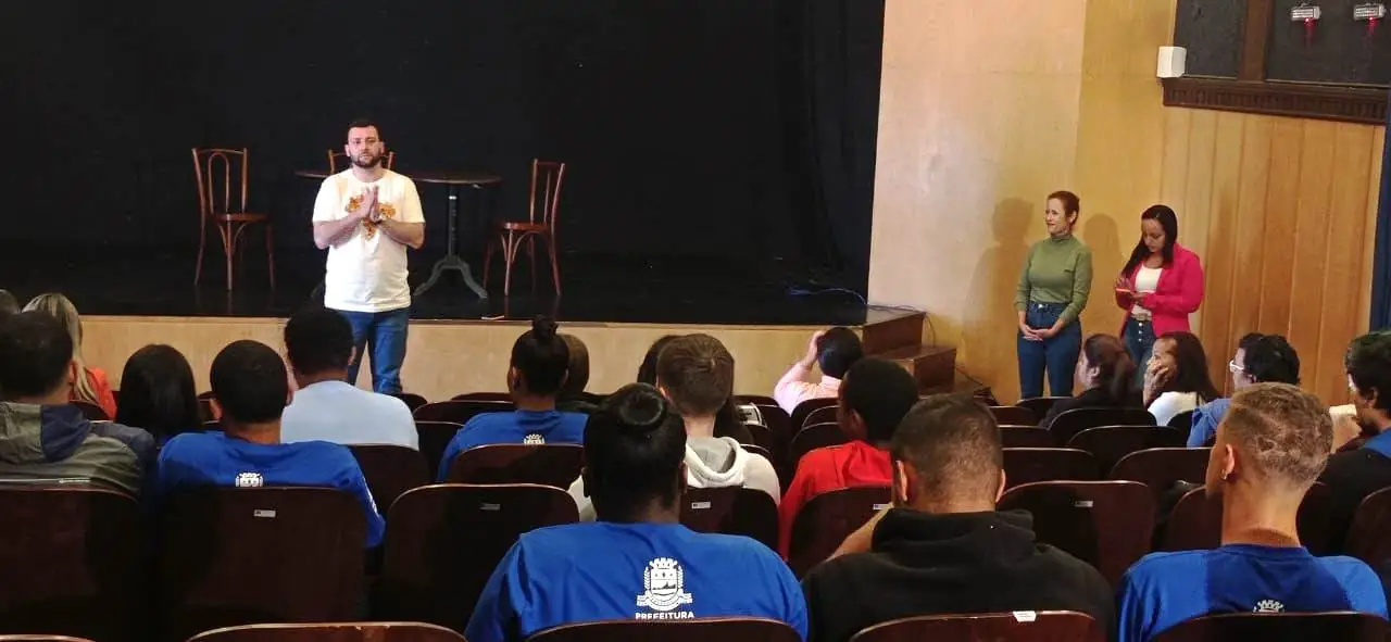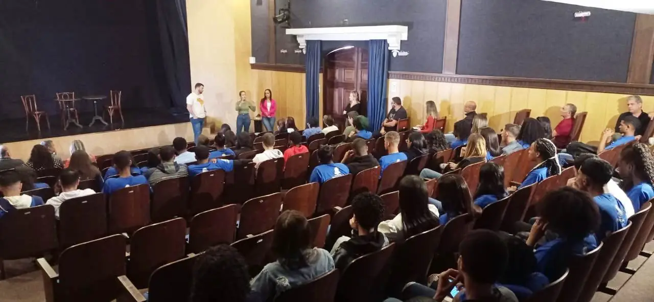 A Prefeitura promoveu nesta segunda-feira, 25, no Teatro Municipal, um encontro entre os 45 jovens selecionados para o Novo Promaj – Programa de Atendimento ao Jovem – e servidores das secretarias municipais. Durante o encontro, os representantes das secretarias apresentaram o trabalho das pastas para os jovens que vão atuar no eixo ‘Gestão Pública’ do programa de inserção no mercado de trabalho e capacitação profissional, lançado na Gestão do Prefeito Vinicius Claussen em junho deste ano.