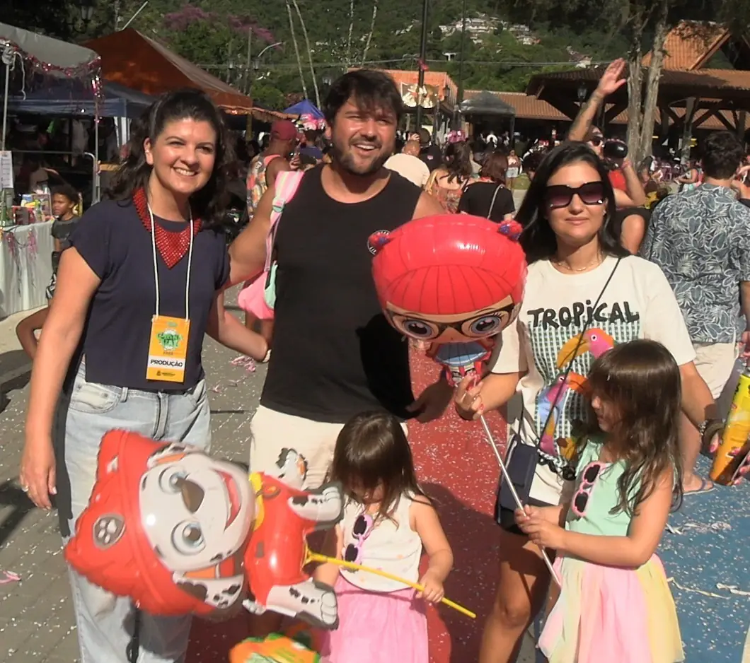 “Muito bom pra toda a família, programação bem agradável. Curtimos muito”, comentou a médica carioca Caroline Ramos, acompanhada do marido, o engenheiro Thiago Napolitano, e das filhas Laura, de 6 anos, e Clara, de 3, que subiram a Serra para curtir a folia em Teresópolis..
