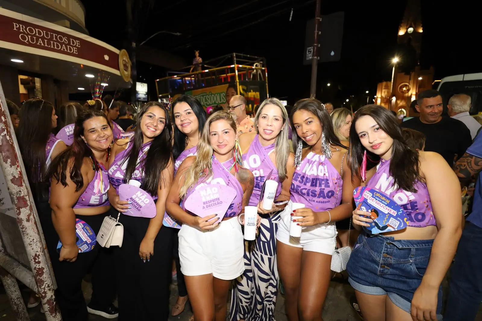 O ‘Bloco Delas’ trouxe à tona um importante debate sobre o respeito à mulher, com o lema “Não é não! Respeita minha decisão”. Com foco no combate ao assédio e na conscientização, o bloco proporcionou um espaço seguro e acolhedor para as mulheres, que se uniram para celebrar o carnaval, mas também para reforçar a mensagem de respeito e igualdade. O evento se destacou como um ato de resistência e empoderamento feminino dentro da folia.