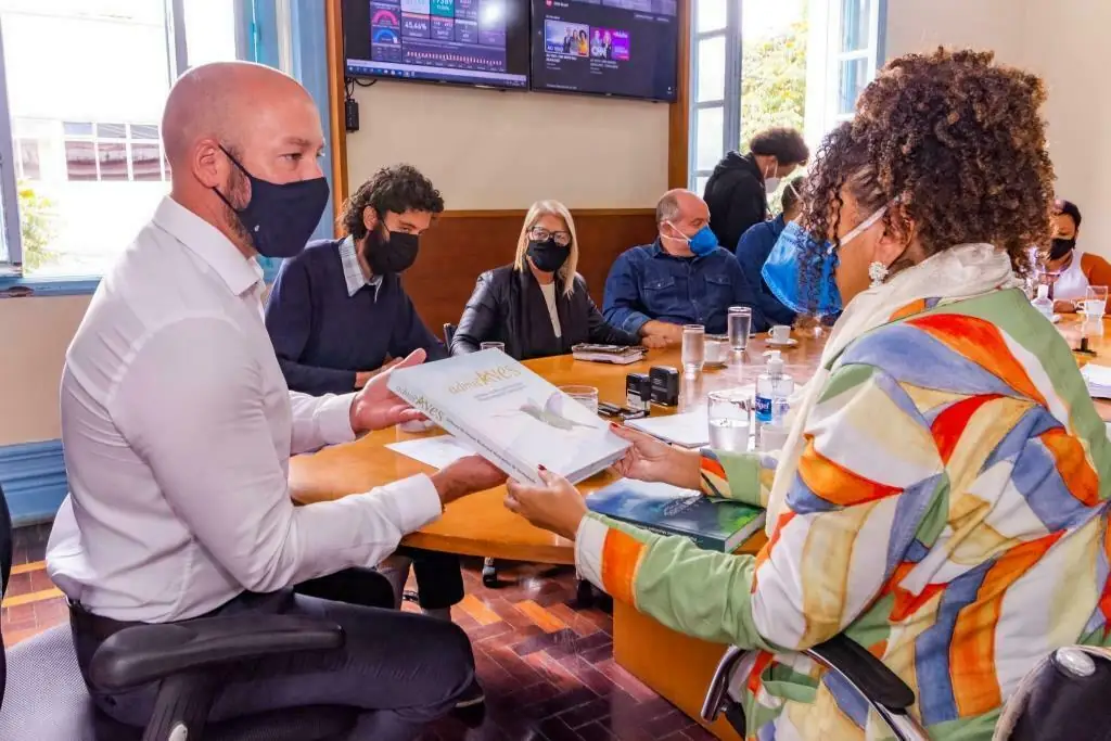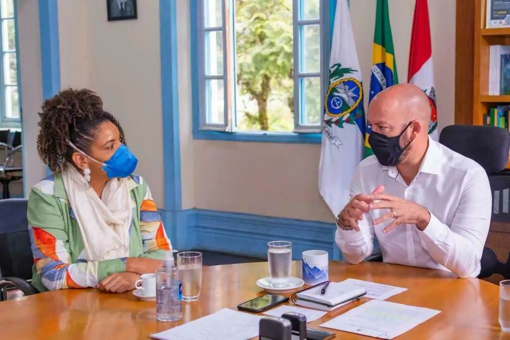 O Prefeito Vinicius Claussen recebeu, em seu gabinete, nesta sexta (30), a Deputada Estadual Renata Souza (Psol-RJ), presidente da Comissão Especial de Enfrentamento à Miséria e à Pobreza Extrema da ALERJ (Assembleia Legislativa do Estado do Rio de Janeiro). Na pauta, assuntos relacionados ao atendimento da população vulnerável, nas áreas assistencial, habitacional, de saúde etc, em especial, neste momento de pandemia. Acompanhada dos secretários de Desenvolvimento Social, Valdeck Amaral, e dos Direitos da Mulher, Margareth Rosi, a comitiva também fez visita técnica aos bairros Fischer e São Pedro.