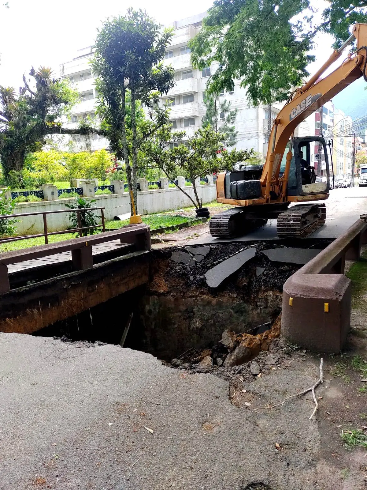 No momento, você está visualizando Prefeitura de Teresópolis retira entulho do rio para iniciar reconstrução da ponte na Rua Jorge Lóssio, no Alto