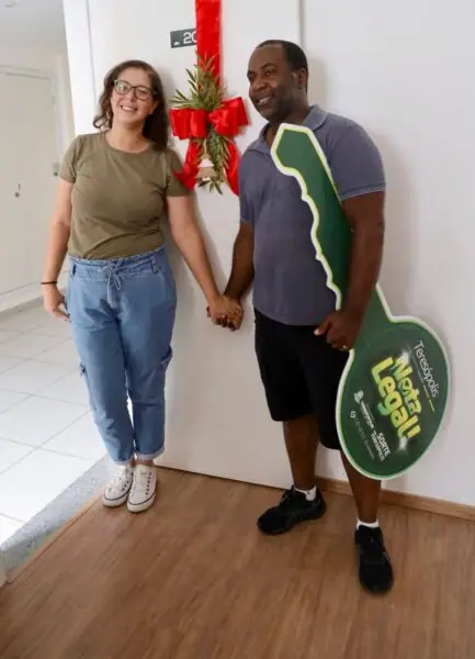 Ao lado da esposa, Cleberson ainda estava se recuperando da enorme surpresa. “Nem estou acreditando, a ficha está caindo aos poucos. Bom demais pra ser verdade, mas é verdade!, exclamou o guarda civil municipal.