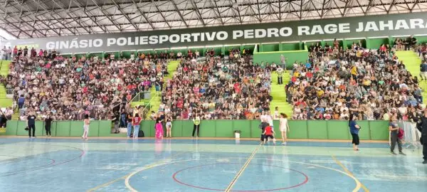 Com o Ginásio Pedrão lotado, o evento contou com a presença do Prefeito Leonardo Vasconcellos, da primeira-dama, Claudia Vasconcellos, secretários municipais, vereadores e contribuintes. A iniciativa tem como objetivo incentivar a cidadania fiscal e a transparência nas transações comerciais realizadas na cidade.