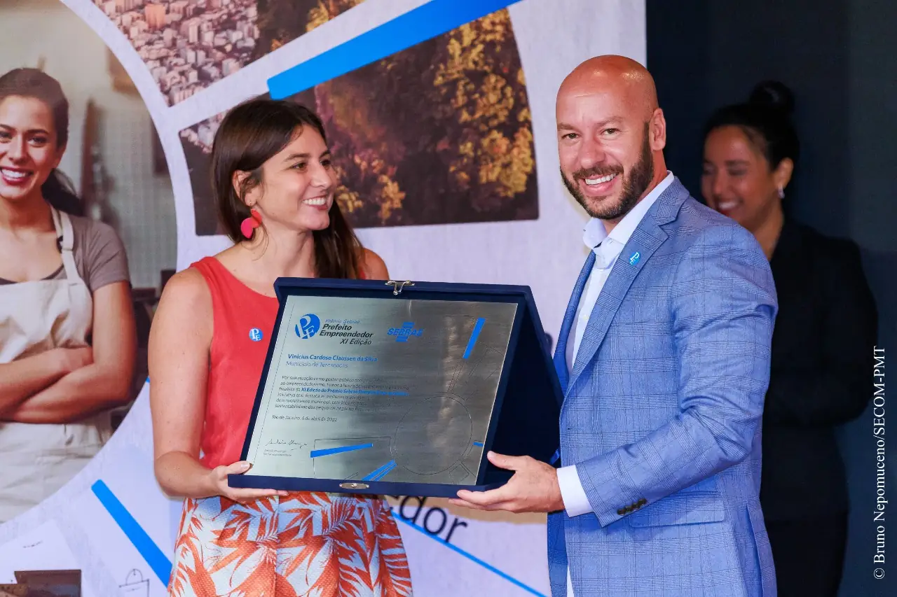 “É com muita emoção que agradeço a todos do Sebrae pelo trabalho incrível que realizam na capital e, em especial, no interior do estado. Agradeço também ao time de servidores da Prefeitura, sem eles essa conquista não seria possível! Também faço um agradecimento especial ao Governador Cláudio Castro, que com competência e humanidade, tem transformado o estado do Rio num lugar de credibilidade e de desenvolvimento econômico e social. Temos um estado atraindo investimentos e que nos inspira. Cláudio Castro pensa e investe em todos os municípios do nosso estado e, tendo a consciência da importância das cidades para a economia que dedico esse prêmio a toda Teresópolis”, destacou Vinicius Claussen, agradecendo à gerente regional da Serrana II do Sebrae/RJ, Cláudia Pacheco, por todo apoio e parceria, e ao secretário de Trabalho, Emprego e Economia Solidária, Lucas Guimarães, que conduziu a elaboração dos projetos que foram inscritos no prêmio do Sebrae.