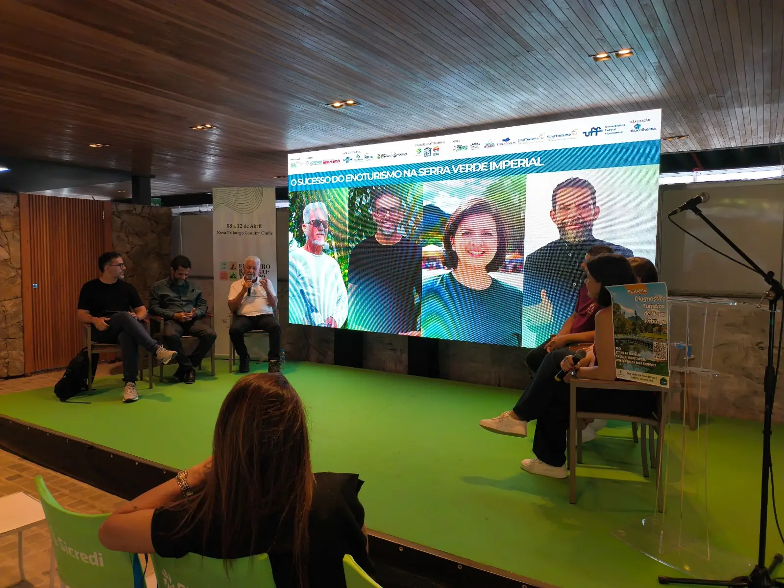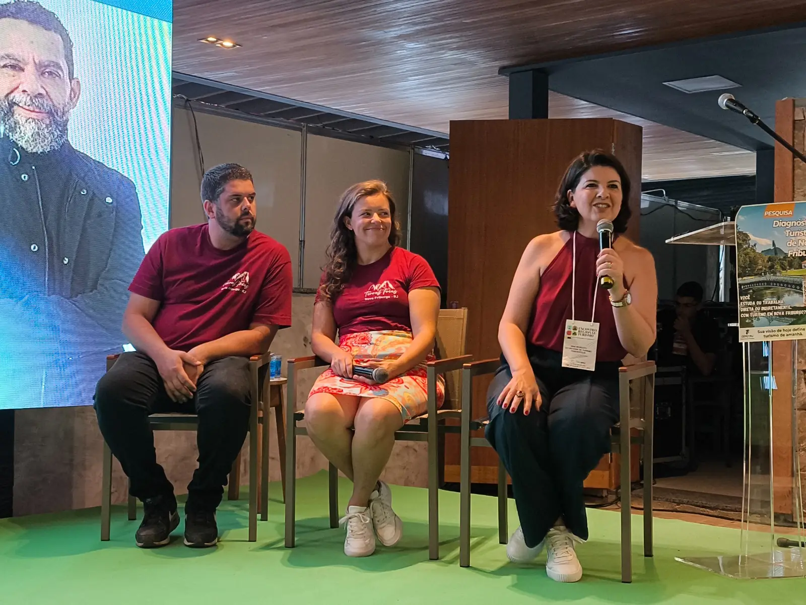 Um dos momentos mais aguardados da programação foi o painel “Enoturismo: o sucesso da Serra Verde Imperial”, moderado pela secretária municipal de Turismo, Nina Benedito. O debate reuniu representantes de vinícolas que vêm colocando Teresópolis em evidência no cenário da vitivinicultura nacional.