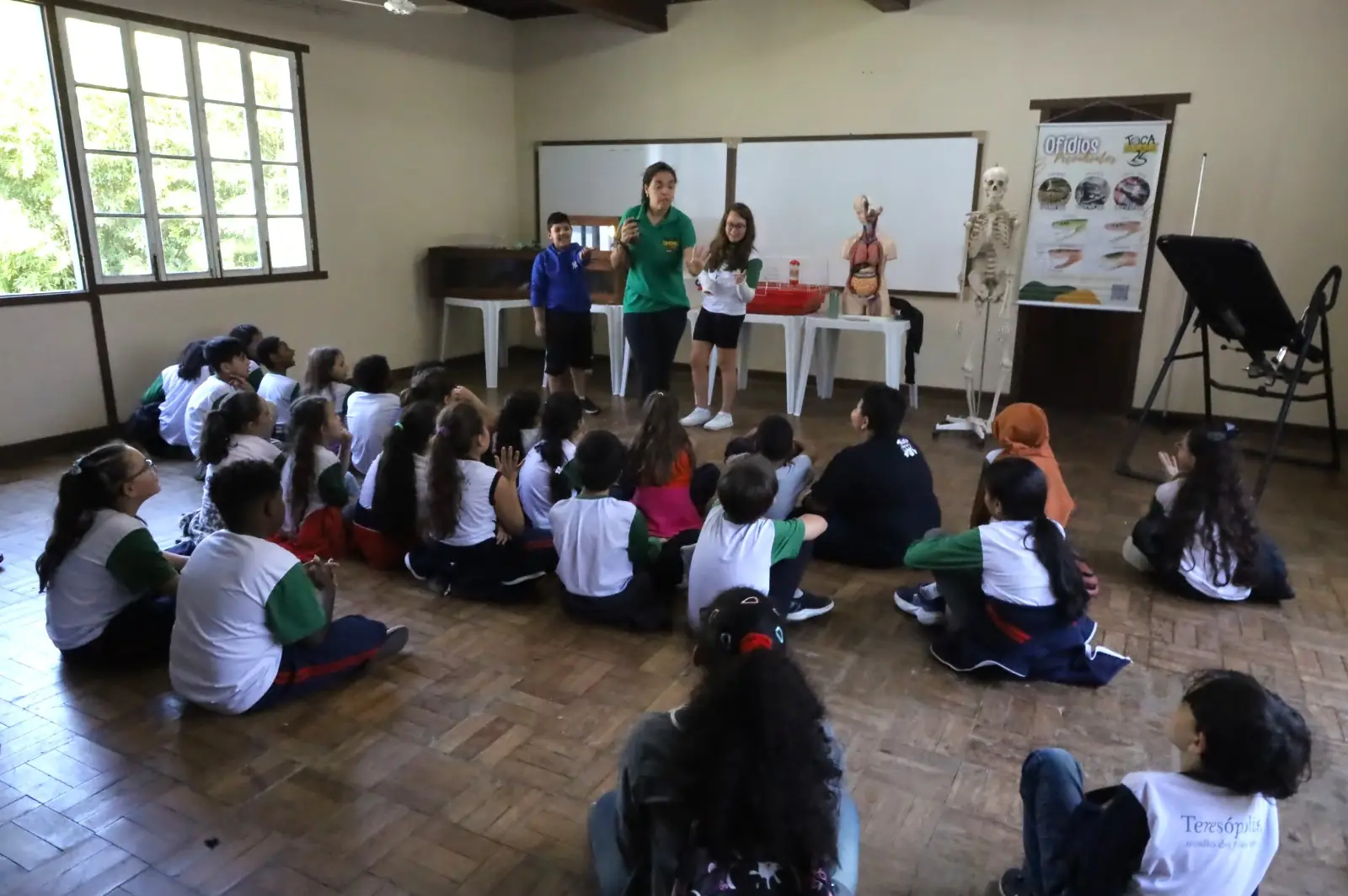 O professor também comentou sobre como surgiu a ideia do projeto. “A nossa proposta sempre foi transformar os conhecimentos teóricos de Ciências (Química, Física e Biologia) adquiridos em sala de aula de uma forma prática, concreta, mas lúdica. E, lógico, o contato direto com os animais é o carro-chefe do projeto, encantando as crianças que nos visitam!”, destacou Tio Júnior, pontuando que a Toca da Ciência conta com quatro monitores, todos formados em Biologia ou Geografia, que interagem com os alunos em cada espaço.